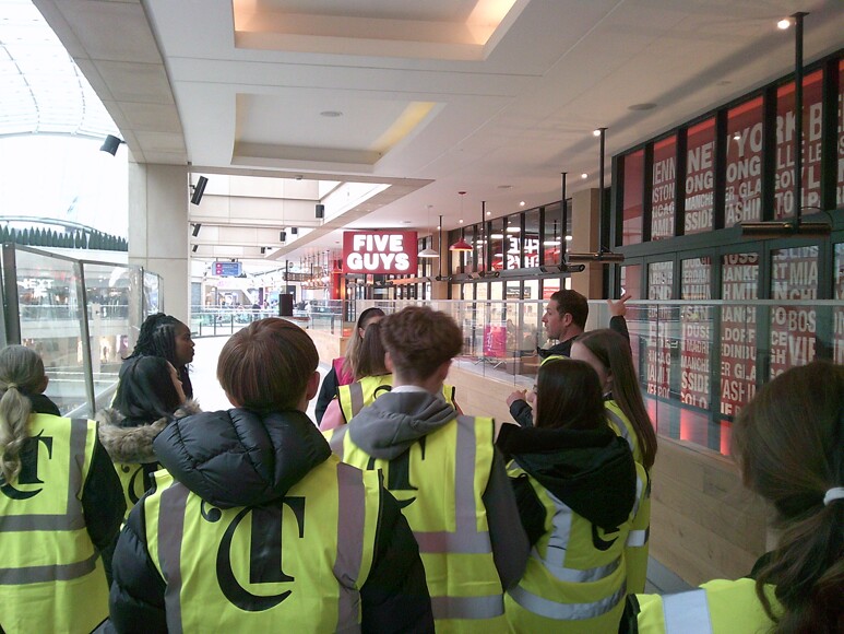 To wrap up the launch event, students were treated to an exclusive "behind-the-scenes" tour of the Trinity Centre. This unique walkthrough allowed the group to see how one of the UK’s busiest retail destinations functions day-to-day, exploring staff-only areas that keep the centre running smoothly. Seeing the logistical and operational side of the facility provided the students with a deeper context for their competition entries, helping them visualize how their own business concepts might integrate into a large-scale commercial environment.